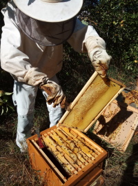 Zu Hause bereiten wir die Rähmchen für die nächste Saison vor. Es werden Mittelwände, die wir aus bieneneigenem Wachs gegossen haben, eingelötet. Und die Honigräume vorbereitet.Arbeiten im August Die Königinnen haben sich prächtig entwickelt. In ihrem eigenen Stock sind sie gewachsen, wurden regelmäßig gefüttert und stiften fleißig, so dass sie mit großer Volksstärke in den Winter gehen können. Im August werden die Bienen eingewintert. Die Tracht ist nicht mehr groß, so werden vorwiegend nur noch Pollen für die Brut gesammelt. Die Bienen werden gefüttert und mit Ameisensäure behandelt, damit sie sauber in den Winter kommen. Denn nur so können sie der Varroamilbe entgegen halten. Die Bienenweide ist kräftig gewachsen, der Klee ist fantastisch für unsere Bienen. Die Streuobstwiese beschenkt uns mit wundervollen Früchten, wie Mirabellen, Zwetschgen und Äpfel.