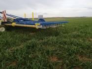 28. März 2022 Auch in diesem Jahr konnten wir den Dinkel striegeln. Ende März waren hierfür ein paar Tage perfekte Witterungs- bedingungen. Auch den Hafer haben wir bereits einmal gestriegelt